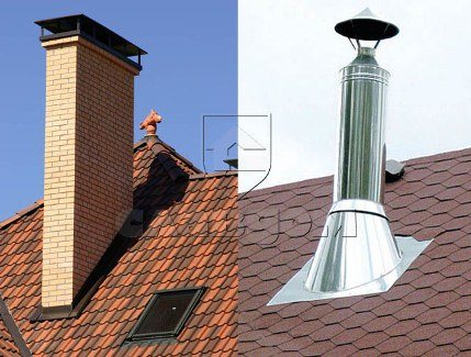 Когато коминът е монтиран през покрива, строителите трябва да монтират специална допълнителна част от тръбата, така наречения "покрив". Създава се още един допълнителен слой, състоящ се от огнеупорни изолационни материали.