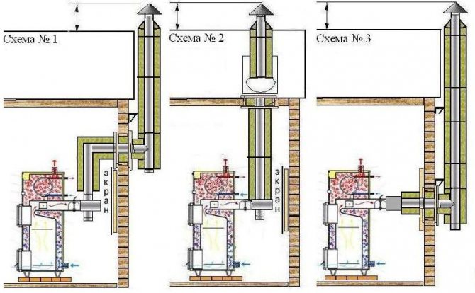 Когато котелът е свързан към комина съгласно първата опция, инсталацията се извършва от котела. Вторият вариант, напротив, е към котела. Металната конструкция се състои от няколко части: