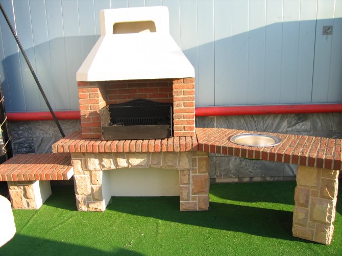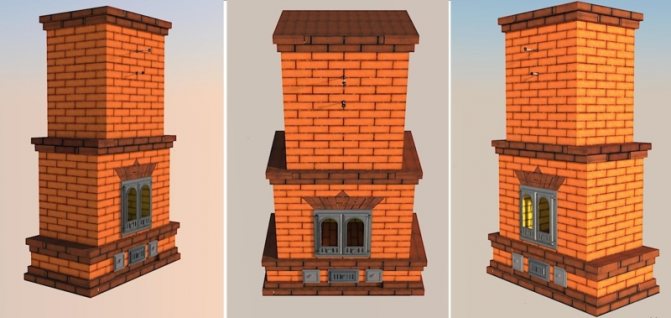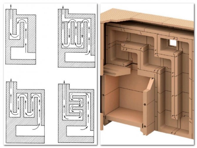 - комбинирани конструкции, в които камината е разположена с дебели стени, а коминът е 1/4 тухла.