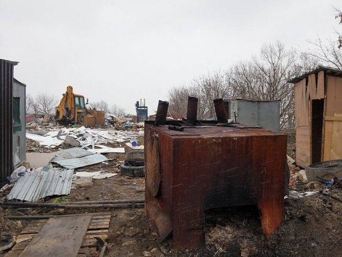Ако на обекта има ненужна печка за сауна, тя може да бъде пригодена за структура за изгаряне. Дори ръждясала и изгнила версия ще свърши работа.