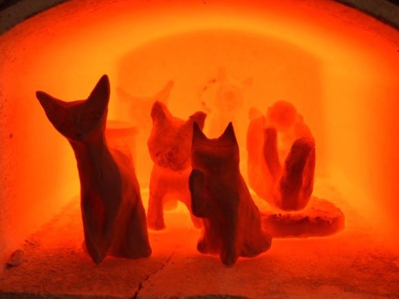 Особено важно е бавно да охлаждате големи предмети и скулптури. В този случай е по-добре изобщо да не отваряте вратата на фурната, докато температурата падне до поне 220-200 ° C, и след това да не я отваряте напълно; разтоварването не се препоръчва, докато температурата спадне до 120–100 ° С. Най-добре е фурната да се разтовари при температура на продукта 50-60 ° C. Тази предпазна мярка е още по-важна за остъклените продукти.