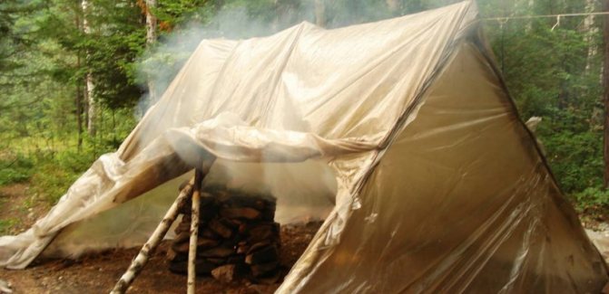 - В „кошчетата на Родината“ на почти половината от нашите сънародници можете да намерите стара платнена палатка без дъно, все още от съветския модел. Брезентовата палатка е нещо, което не може да бъде убито дори за импровизирана парна баня, пасва идеално, единственият недостатък е теглото му, брезентът е по-тежък от съвременните аналози;