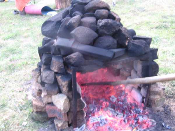 Но този метод е добър, защото когато се стигне до край, можете да изградите рамка точно около печката и дори частично да я покриете. Огънят е концентриран на едно място и тук с няколко удара на лопатата ще премахнете напълно въглищата от пещта.