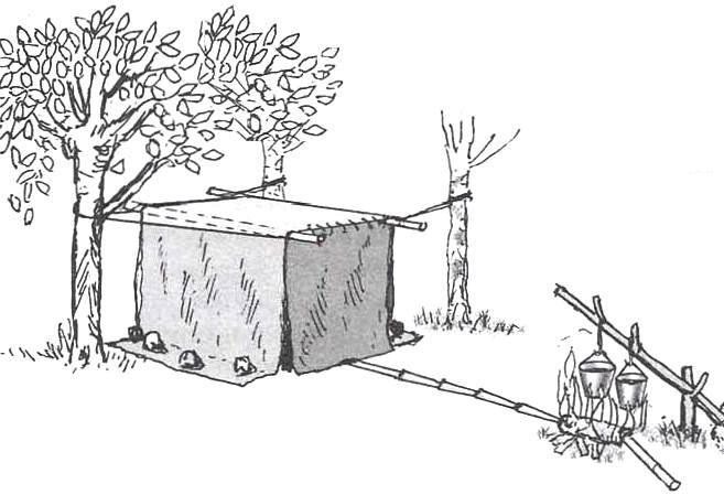 Докато камъните най-накрая се затоплят, трябва да имате готова парна баня. По-лесно е, разбира се, да се построи хижа като индийски вигвам. Но е лошо, защото топлината ще се събира в горния конус, а жалките трохи ще останат на долния слой, където хората действително се реят.