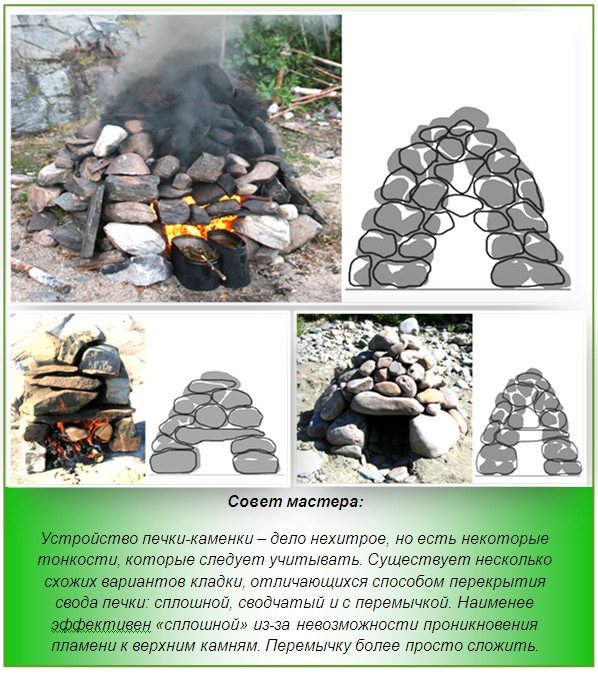 Ще ви дам отделна тайна за подбора на камъни от моя собствен опит. Избирам камъни в слънчев ден, за предпочитане на открито и взимам само горещи камъни. Ако камъкът е затоплен от слънцето, това означава, че той акумулира добре топлина и се вписва идеално под печката за лагерна баня.