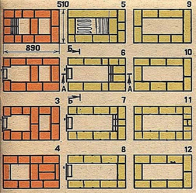 По време на полагането на 5-ти ред се монтира решетка. Започвайки от този ред, до 15-ти, зидарията трябва да се извършва с огнеупорни тухли.