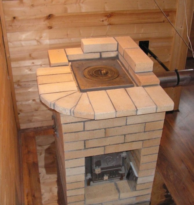 Начинаещите производители на печки се съветват да обърнат внимание точно на такава проста тухлена печка. Готовата конструкция има малък размер - общата заемана площ е не повече от 0,5 м2