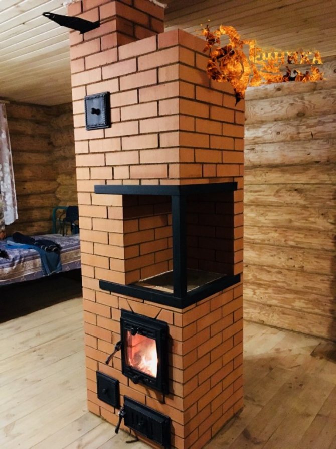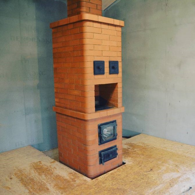 - Вече монтираната врата се покрива и печката се поставя. Препоръчително е да купите чугунната версия за готвене.