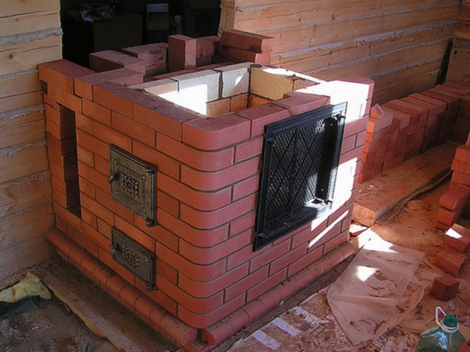 Ако тухлената фурна е планирана да бъде лека, без постоянно интензивно нагряване, тогава първият ред тухли трябва да бъде положен върху слой изолация: