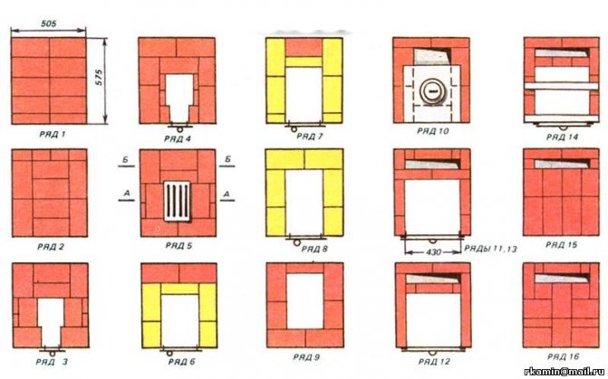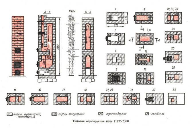 В случай, че бъдещата тухлена печка Malyutka се отоплява изключително с дърва за огрев, при нейното изграждане може да се използва червена тухла, но за изграждането на горивна камера и горивна камера са подходящи само строителни и огнеупорни тухли.