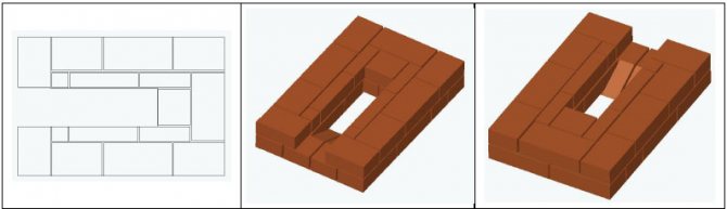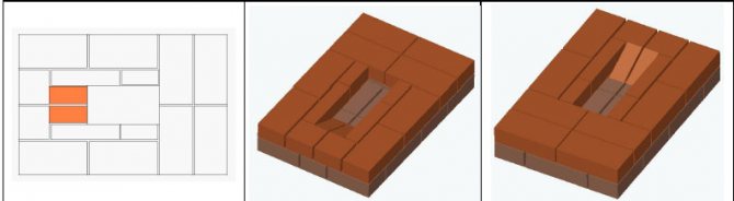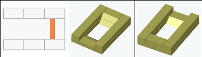 8 ред. Отгоре се поставят две тухли, за да се затвори вратата. За този ред ще ви е необходима скосена тухла, тя ще служи като вид навес.