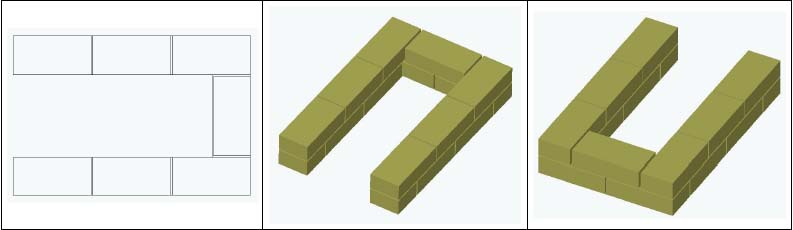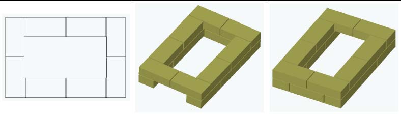- Подреждането започва от ъглите, по три реда.