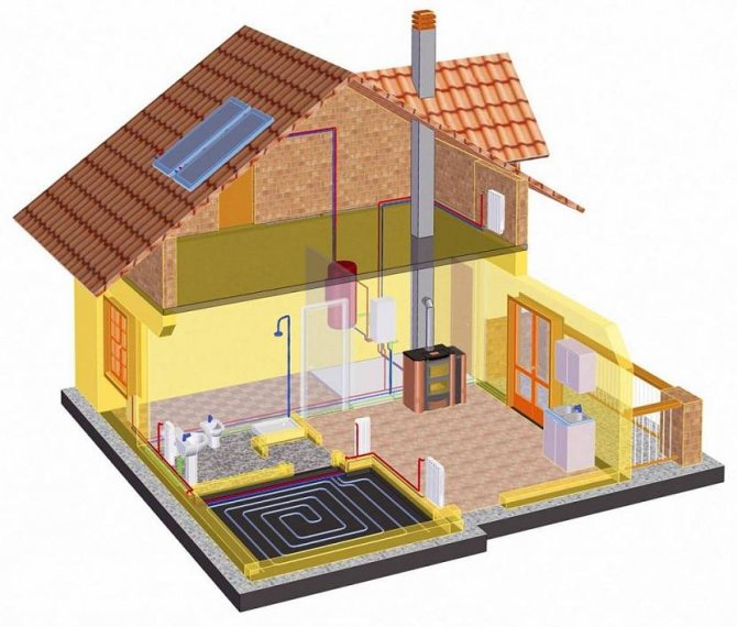 - Печката, която е проектирана като основен източник на топлина в двуетажна къща, е единична система, която минава през цялата сграда и е свързана с носещите елементи.
