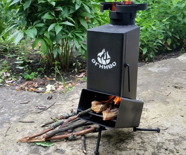 - Домашна печка за къмпинг от метални тръби, кофи, кутии;