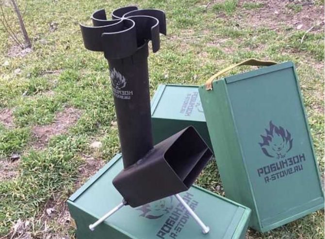 Най-популярният преносим модел е ракетната пещ Робинсън. Той беше модифициран и беше добавена решетка.