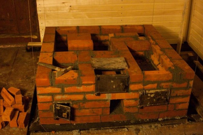 - Руска печка с печка за печка, изработена от царска тухла: конструкция стъпка по стъпка