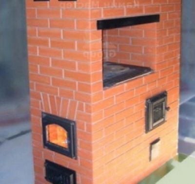 Наличието на готварска камера, както в обикновената руска, - две камини с различна мощност, чугунена печка, вентилация и умерени размери. Използвайте тигела и двете камини за готвене. Освен това първият се използва през лятото, като се избягва ненужно отопление на помещението. Най-голяма топлинна ефективност се постига при използване на основната камина, а втората може да се отоплява или отоплява. Можете да инсталирате кутия за топла вода и устройството ще се промени.