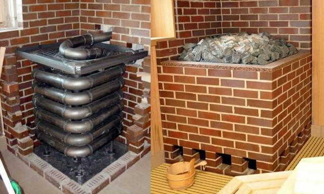 Да затворите печката за сауна с тухлен екран или дори напълно да я поставите в подобен "калъф" е съвсем осъществима задача за независимо изпълнение. Специална статия на нашия портал ще разкаже на читателя повече за това - "Как да тухлите желязна печка със собствените си ръце".
