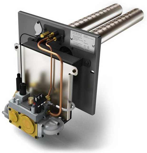 работи по следния тип: газта започва да се смесва с въздуха в отделението, преди да бъде влязъл директно в горивната камера. Освен това въздухът се подава допълнително в горивното пространство, като по този начин осигурява необходимото количество кислород. За регулиране на количеството входящ въздух в долната част на конструкцията е предвидена малка врата. Освен това може да се използва за почистване на горелката.