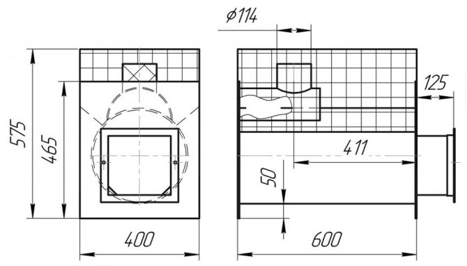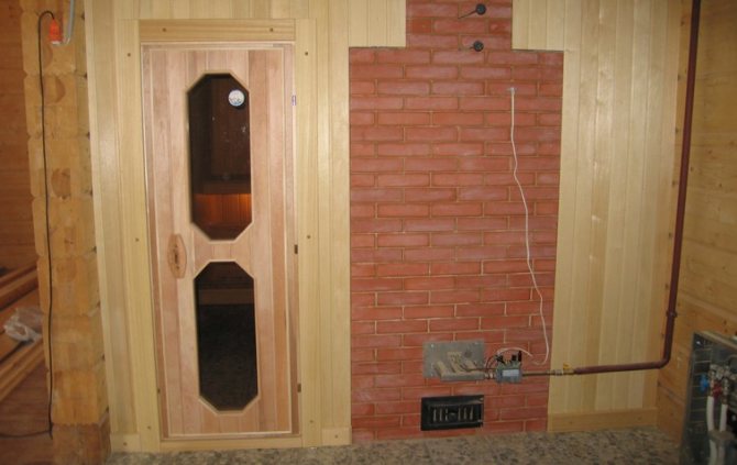 От страната, обърната към съблекалнята, печката обикновено има удължен канал за гориво (т. 4), което позволява през стената да се извади прозореца за зареждане и съответно газовото оборудване от парната.