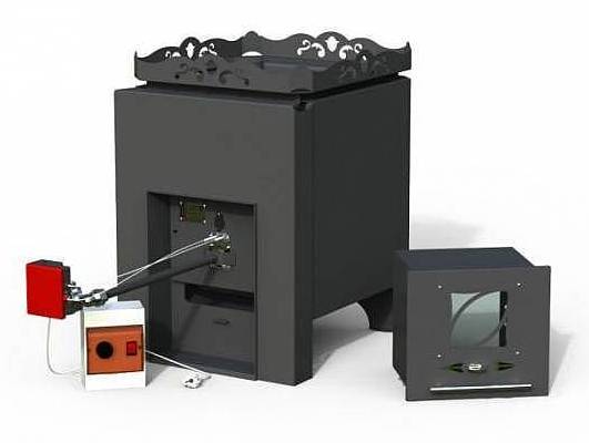 | "RUS 18 LGDU" | Компактна евтина газова печка за баня. Топлинна мощност - 16 kW, предназначена за обем на парна баня от 10 до 18 m³. Съкратена тръба за гориво, която не винаги ви позволява да я занесете в съблекалнята. Когато газовата горелка е свалена, печката работи добре и на твърдо гориво. Размери на пещта: 588 (Д) × 388 (Ш) × 816 (В) мм, тегло - 49 кг. Масата на каменната отметка е 90 кг.На него се поставя коминът с диаметър 115 mm, централно разположение, обикновено резервоар за топла вода (от 55 до 80 литра). При желание се закупува модел с вграден топлообменник. | 15 000 рубли стандартно (включително газова горелка) |