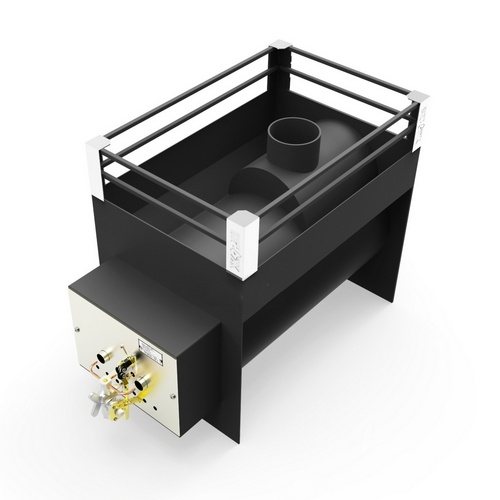 | Една от най-компактните печки за сауна на газ. Мощността на газовата горелка GGU-16, включена в комплекта, е 16 kW, а пещта с нея позволява отопление на парна баня с размер от 4 до 12 m². Размери на пещта - 400 (Ш) × 725 (Г) × 575 (В) мм. Теглото без отметка е 54 кг, а теглото на полаганите камъни е 100 кг Диаметър на комина - 114 мм. Дебелината на свода на камината е 6 мм. Камината може да се изнесе в съблекалнята. По желание на купувача той може да бъде оборудван с резервоари за вода с обем 50, 73 или 90 литра срещу заплащане. | 15 900 рубли |