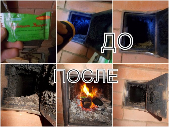 Използването на състава предотвратява стесняването на канала на комина, увеличава топлопредаването на устройството с 20%