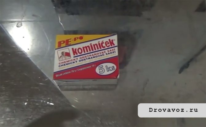 Въпреки уверенията на производителя за висока ефективност, той трябва да се разглежда само като допълнителен метод за почистване на комина. Основният метод за почистване остава механичен (четка): само по този начин можете напълно да почистите цялата мръсотия от стените.