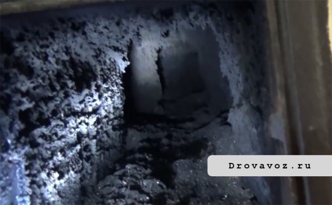 Всички те под формата на плътна, вискозна утайка покриват вътрешната повърхност на тръбите и създават условия за задържане на сажди, сажди и сажди. Каналът, през който газообразните елементи излизат в атмосферата, се стеснява до минимум, тягата се преобръща и част от дима навлиза в хола.