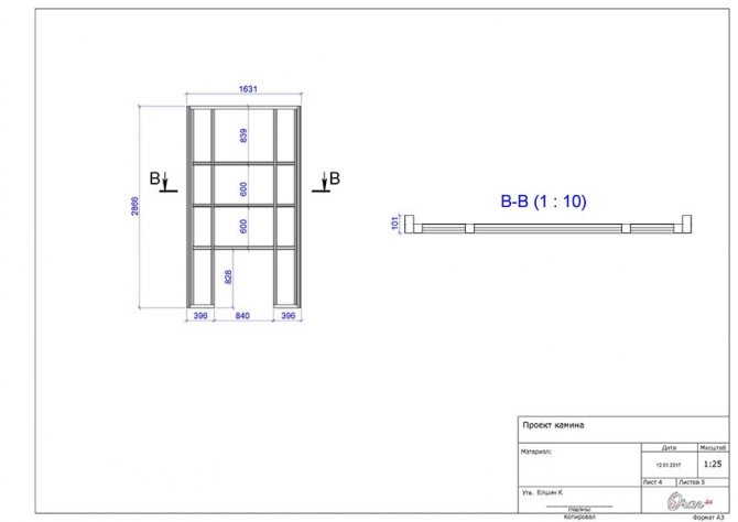 Първата част от работата е завършена. Камината е зашита в кутия Super Isol, свързана с комина и направихме първата горивна камера, за да проверим работата на камината. Освен това ще бъде монтирана рамка от профили с обшивка с листове от гипсофазерни плоскости с ширина 1670 mm. Към тази конструкция ще бъде прикрепен мраморен портал.