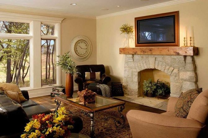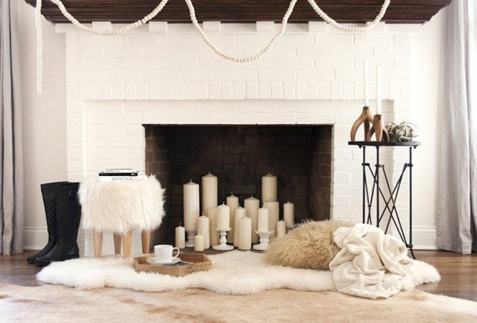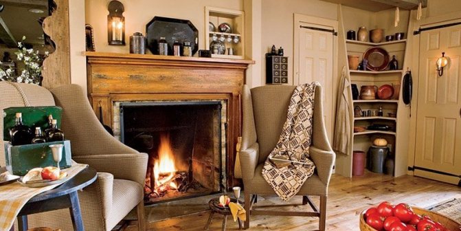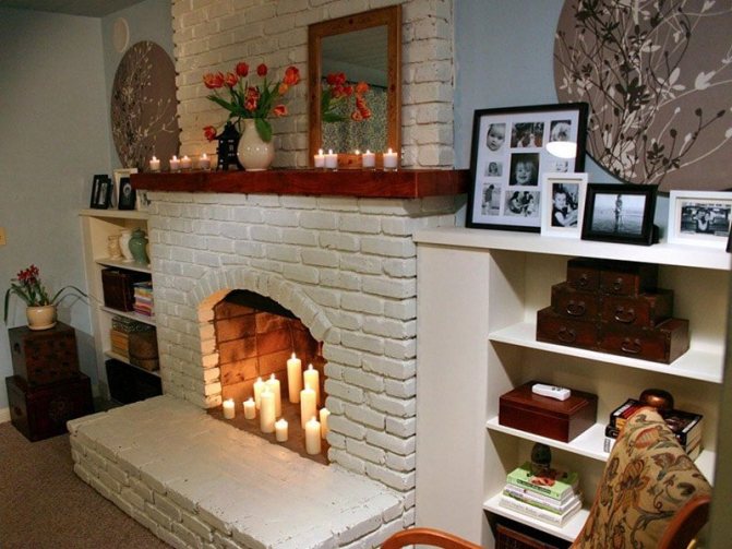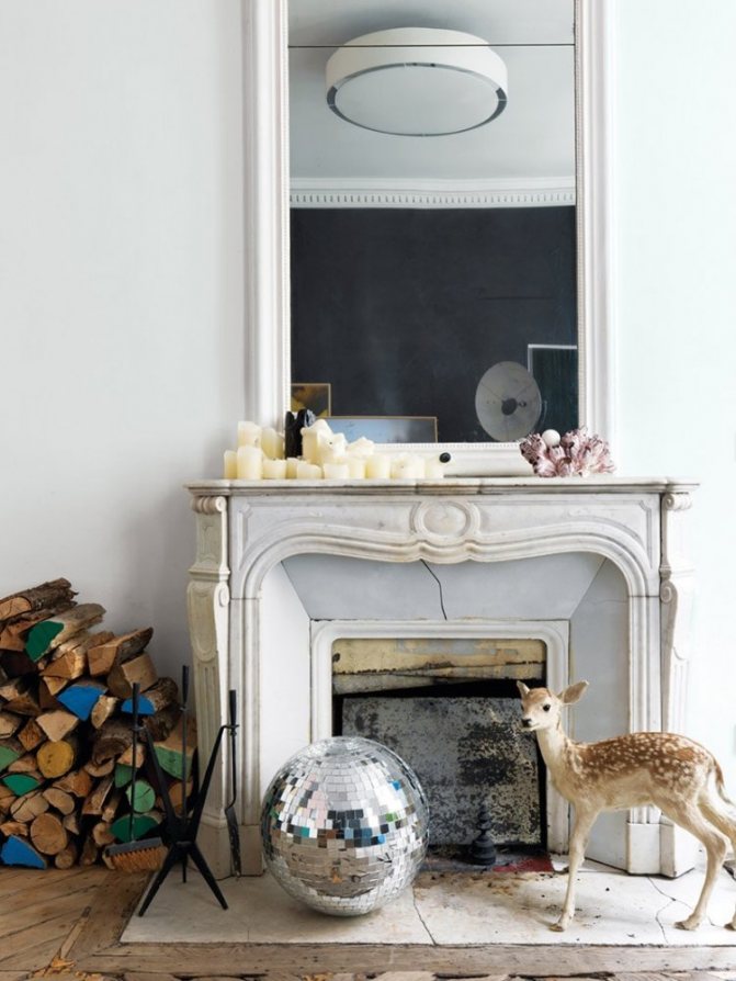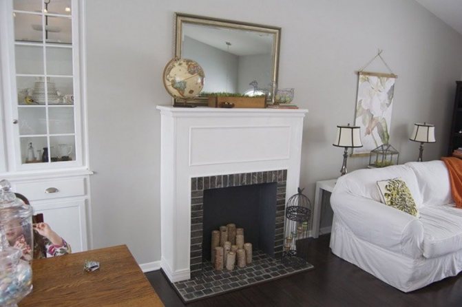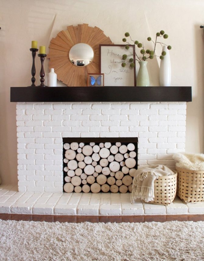 - дърва за огрев в камината се използва декоративни, керамика или камък.