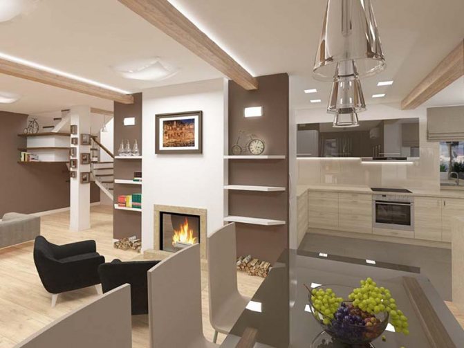 Дизайнерският проект на стая с камина ни позволява ясно да разберем същността на конструкцията и дава насока за нашата работа. Виждаме какъв трябва да бъде крайният резултат и коригираме размерите на камината към този резултат.