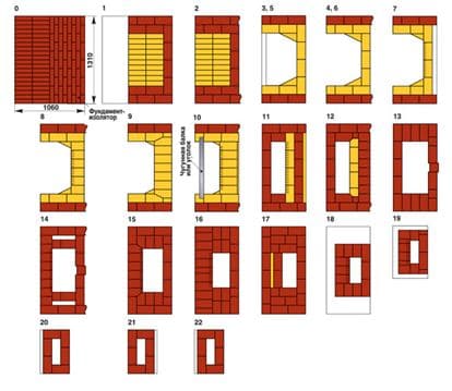 Печката за камина за отопление може да се сгъне от тухли, като се спазват пропорциите