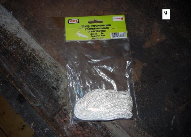 Не се препоръчва да се полагат азбестови шнурове, тъй като те могат да отделят при нагряване вещества, вредни за здравето на околната среда. Позволено е да се замени керамичната корда с материал от минерална базалтова вата.