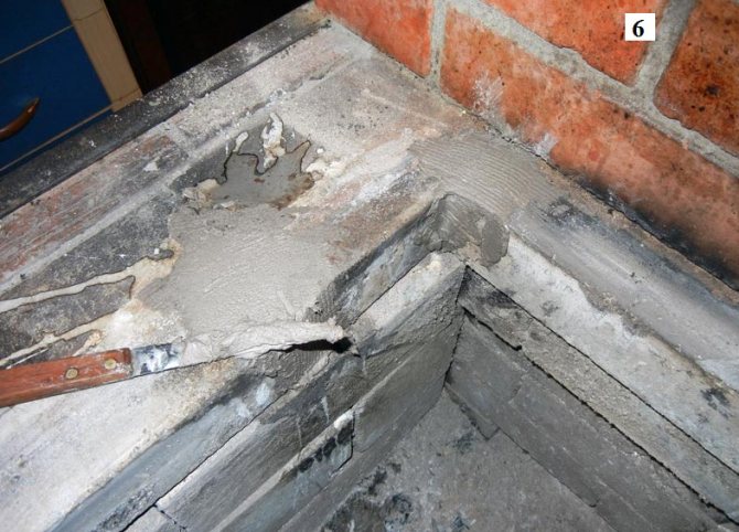Ако самата печка се е напукала, хоросанът за зидария се руши и димът се излива през пукнатините на плота и основата на печката, тогава трябва да се вземат мерки за запечатване на всички съществуващи пукнатини възможно най-скоро и евентуално укрепване на тухлена зидария. За да направите това, трябва да премахнете плота от мястото си, да почистите цялата съществуваща мазилка от страничните повърхности и да проучите колко здраво са поставени всички тухли в зидарията.