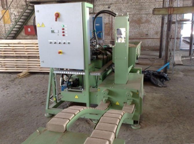 - машини за брикетиране: това може да бъде производствена линия или отделни машини за обработка на дървени стърготини или слама.