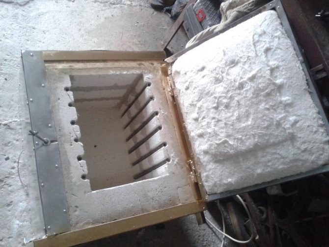 Забележка: Такава муфелна пещ „направи си сам“ ви позволява да изгаряте керамични изделия. За металургично отгряване или претопяване на цветни сплави е необходима индустриална пещ.
