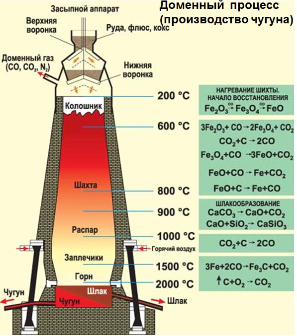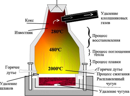 Процесът на доменната пещ напълно зависи от излишъка на въглерод в кухината на пещта; той се състои в термохимични реакции, които протичат вътре, когато всички компоненти се зареждат и нагряват.