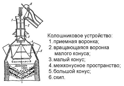 - големият конус заема първоначалното си положение, освобождавайки заряда в кухината на доменната пещ за обработка.