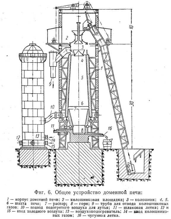 Доменната пещ е не само инсталация за производство на чугун, но и многобройни помощни агрегати. Това е система за подаване на заряд и кокс, шлака, разтопено желязо и газове, система за автоматично управление, каупери и много други.