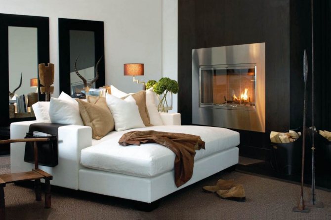 Дизайнът на каминните конструкции трябва да съответства на интериора на помещението, в което са монтирани (за повече подробности: „Създаваме оригинален интериор на стая с камина“). Те могат да бъдат декорирани в най-различни стилове, вариращи от класически до модерен модерен. Според руските традиции камините често са облицовани с плочки (прочетете: "Как да фурнирираме камина - съвети за облицовка").Такива огнища придават уют на всеки интериор и създават атмосфера на комфорт. Камините са завършени с порцелан и украсени с плочки, инкрустирани с позлата.