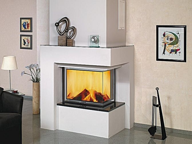 Използвайки определени трикове, майсторите създават „въздушни“ дизайни за ъглови камини