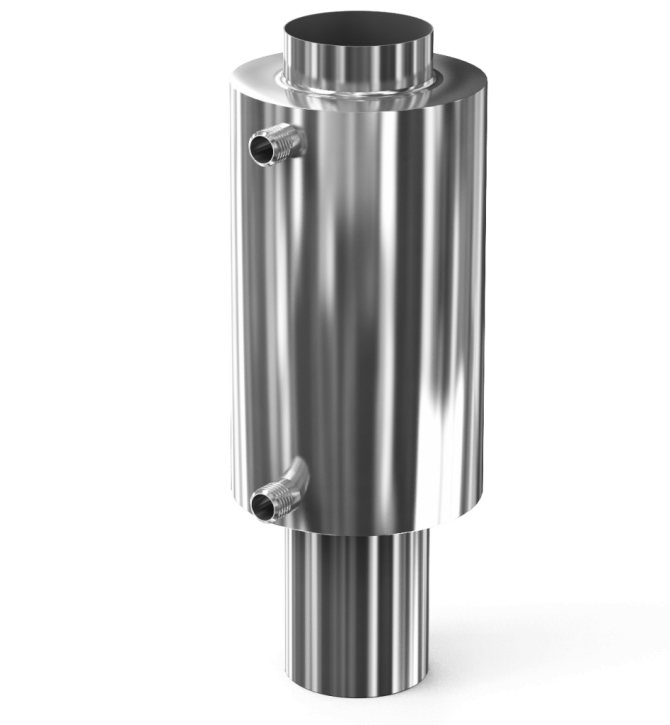Висококачественият топлообменник на комина е изработен от аустенитна неръждаема стомана с хранителен клас. Действа чудесно при постоянно излагане на високи температури. Никелът, който се съдържа в сплавта, образува специален филм на повърхността на тръбопровода, който е устойчив на въздействието на агресивна среда.