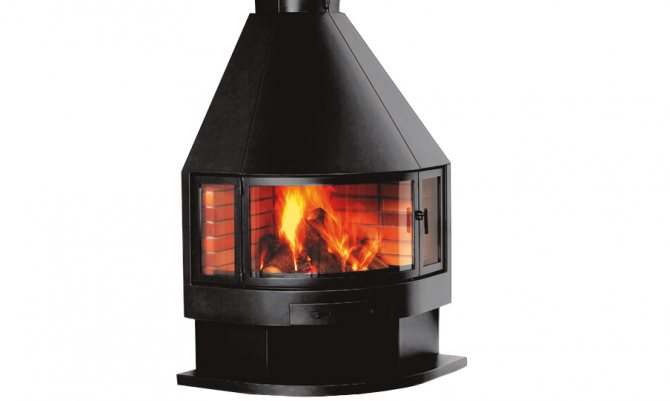 Неговата ъглова подредба ще ви позволи да получите желаната възможност да съзерцавате езиците на пламъка и в същото време да не губите полезно пространство.