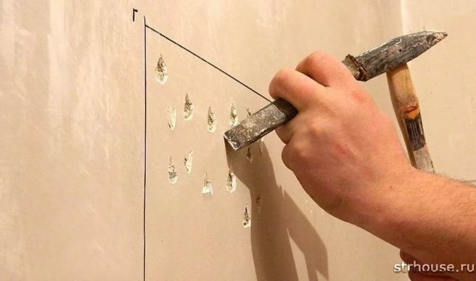 Нестабилните гипсови съдби се отстраняват без съжаление. И по-често завършва с пълно премахване на стария слой мазилка.