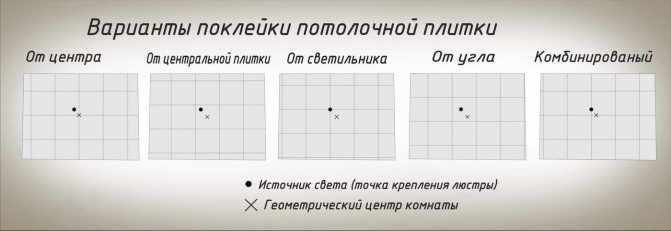 Схема за залепване на таванни плочки.