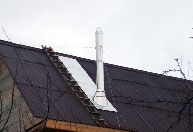 Необходима е изолация на мястото на тръбата, където топлата повърхност на комина "се среща" със студен въздух. Като правило този сайт се намира или в студено таванско помещение, или там, където конструкцията е показана на покрива.