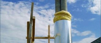 Съвет: можете да използвате минерална вата без стоманена обвивка, за това увийте тръбата на комина с памучна вата и я затегнете със скоби; при силни студове коминът ще трябва да бъде увит в няколко слоя.