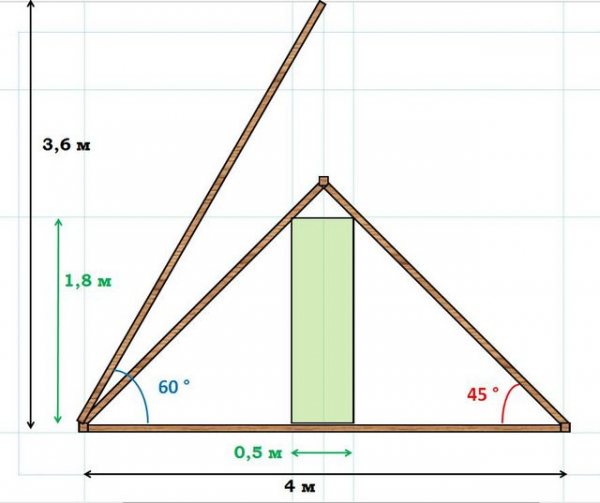 Схематично изчисление включва изграждането на триъгълник с форма, подобна на формата на покрива в строго поддържан мащаб. Най-удобният мащаб за рисунки е 1: 100, където 1 сантиметър в графично изражение съответства на 1 метър реални показатели.