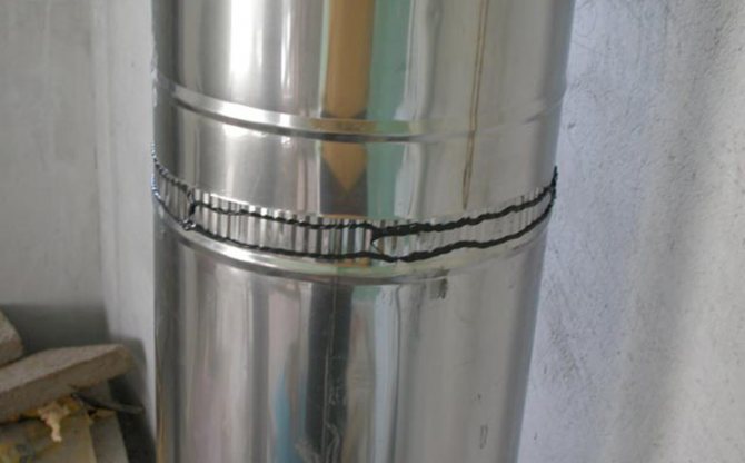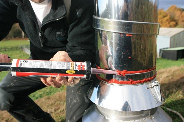 Често, когато инсталирате комин, тръбите са свързани "в камбана". За уплътняване на фугите се използва специален топлоустойчив уплътнител. За да укрепите връзките, можете да използвате специални съединители.